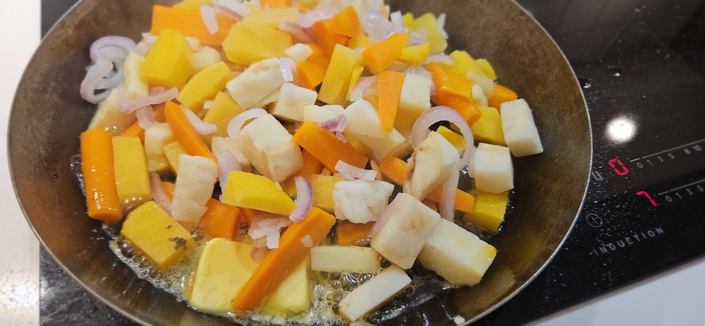 - 600 g rotgrønnsaker (gulrot, pastinakk og sellerirot), i grove biter
