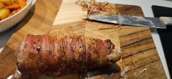 - Surr baconskivene rundt fileten så hele stykket er dekket.