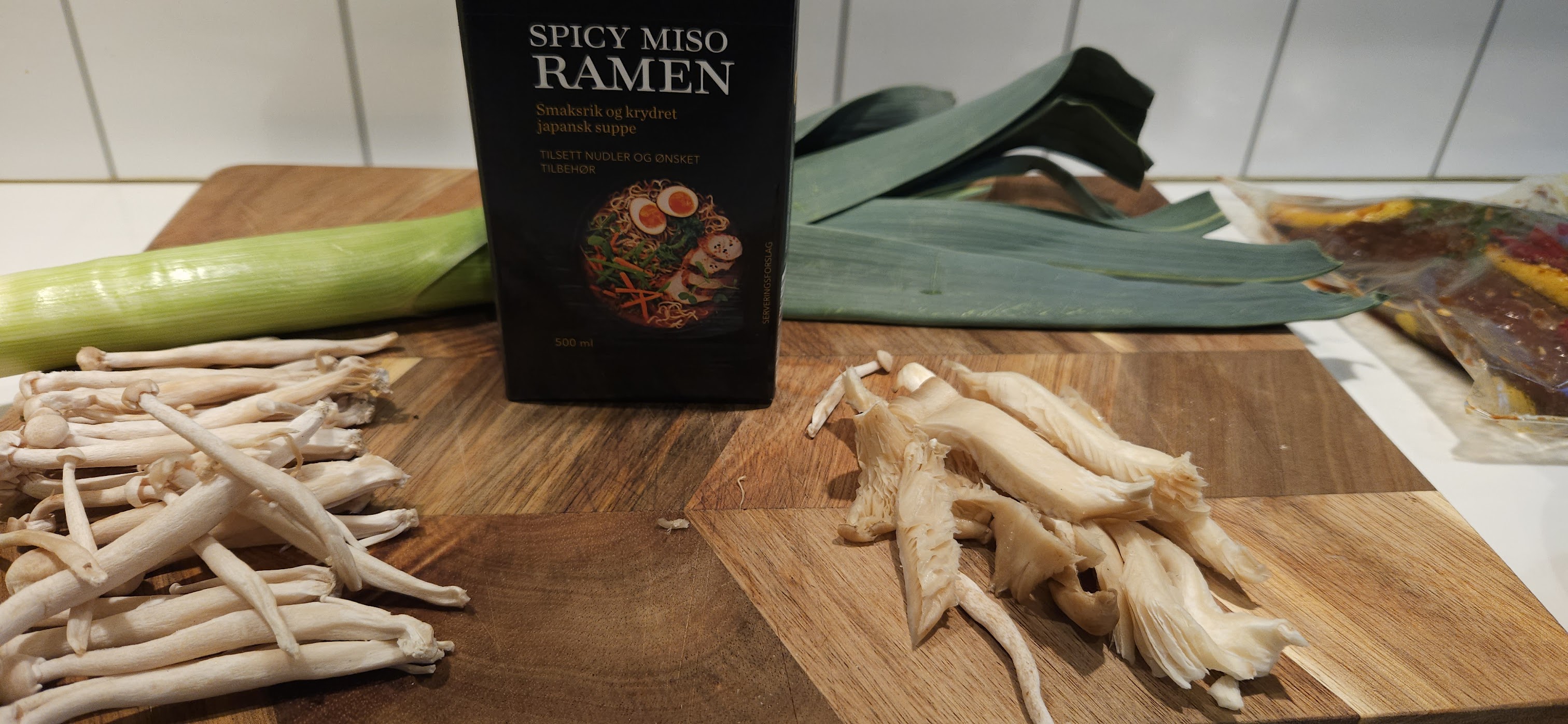 - Smak til misobasen. Legg nudler i skåler, øs over kål og varm suppe, og topp med purre, sopp, kjøtt og et delt egg i hver skål.