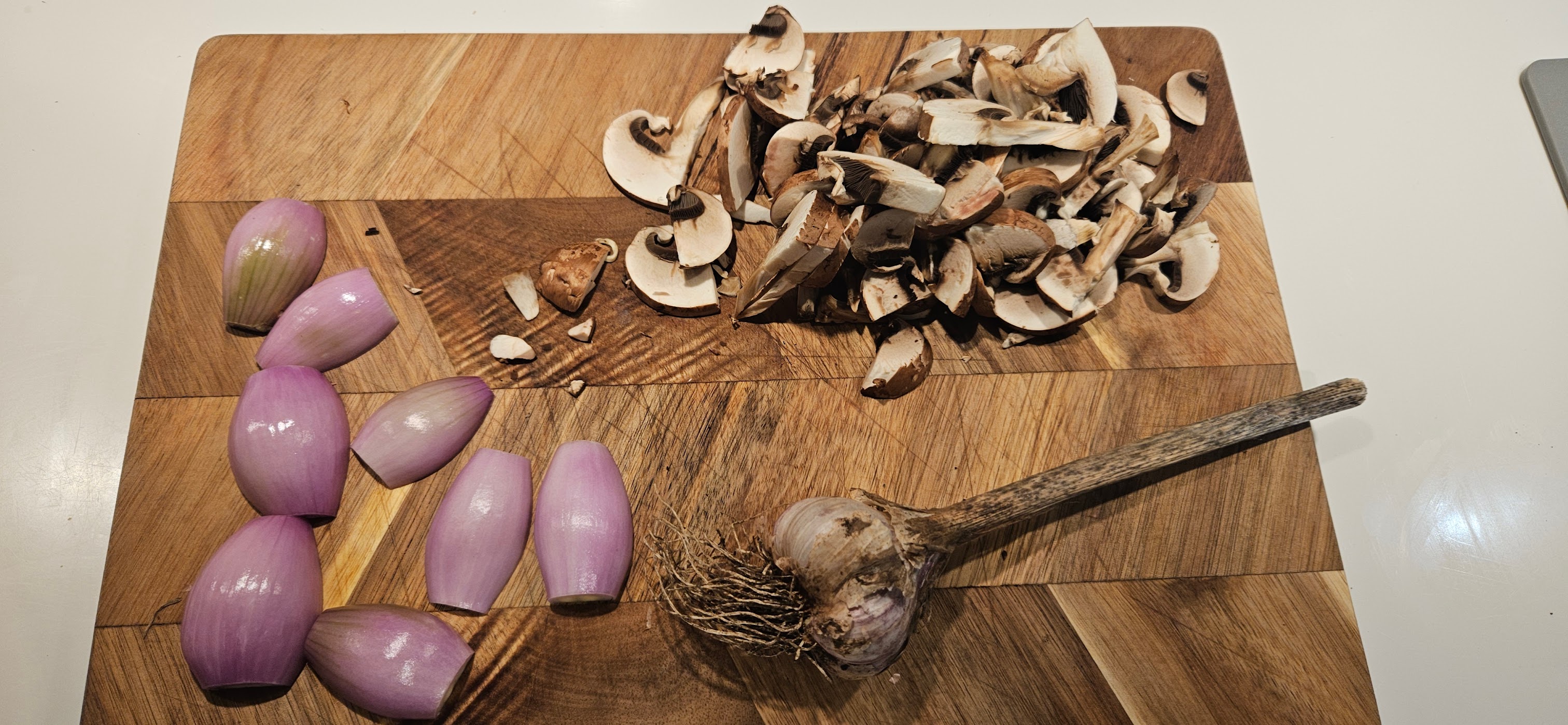 - 3 sjalottløk, skåret i båter eller tykke skiver